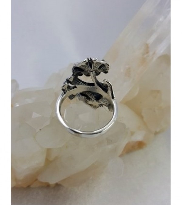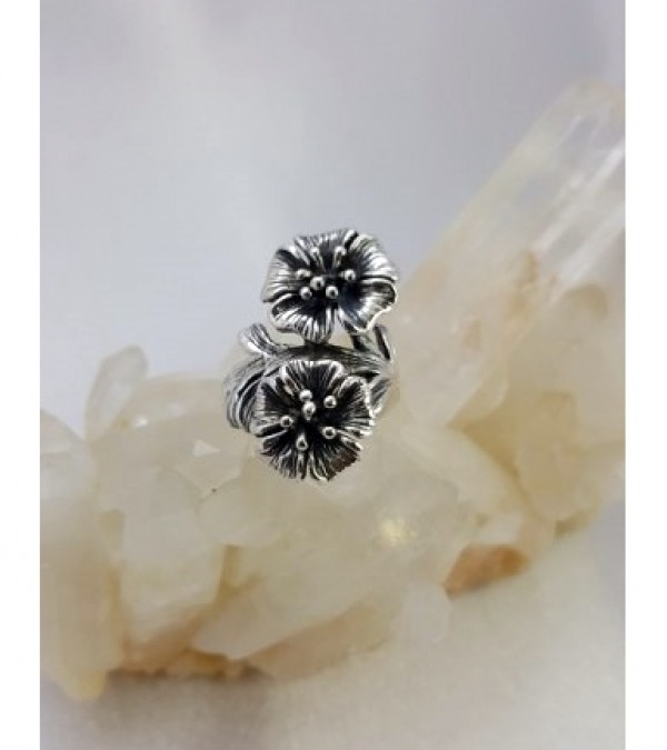 Çiçek Şeklinde, Oksitli, Gümüş Yüzük (925 Ayar)