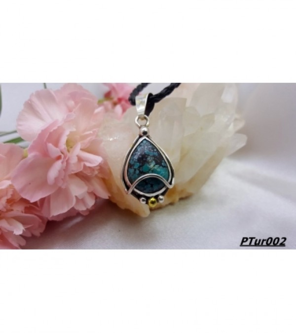 Turkuaz Taşlı, El İşçiliği, Gümüş Kolye Ucu (925 Ayar)