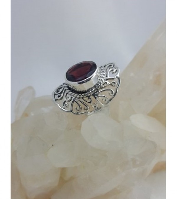 Granat Taşlı, Ajurlu, Gümüş Yüzük (925 Ayar)