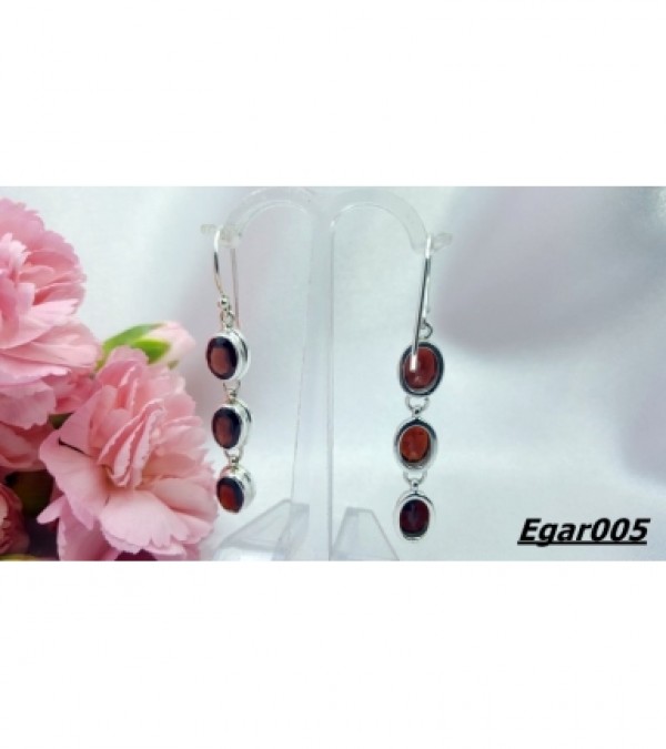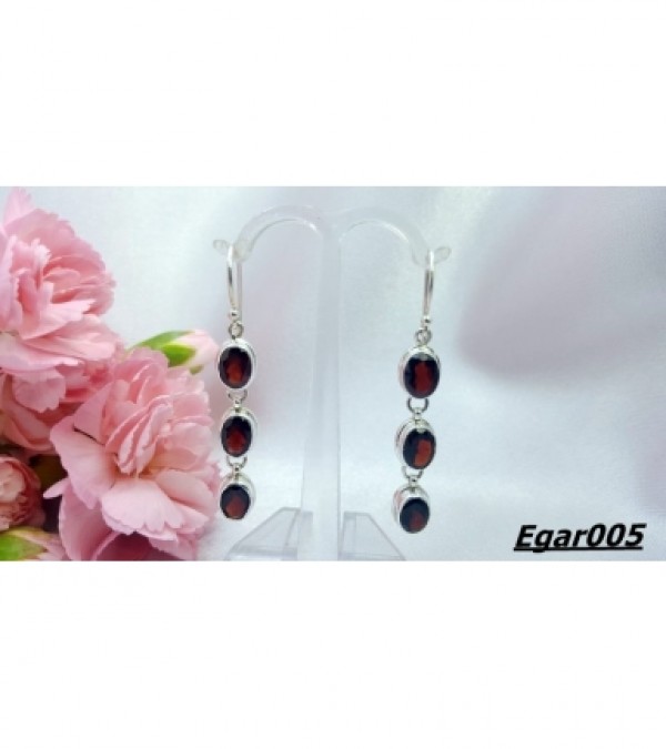 Bali İşçilikli, Granat Taşlı, Sallantılı, Gümüş Küpe (925 Ayar)