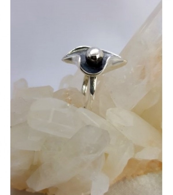 Ortası Top Şekilli, Oksitli, Gümüş Yüzük (925 Ayar)