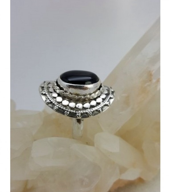 Oniks Taşlı Gümüş Yüzük