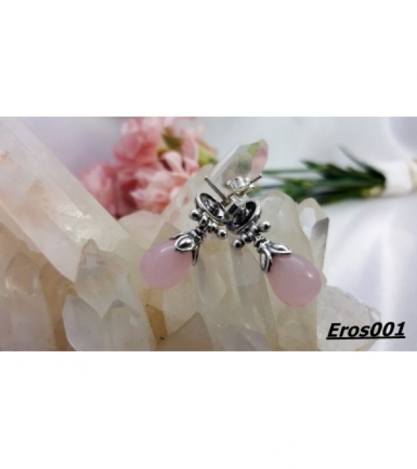 Pembe Quartz Taşlı, Gümüş Küpe (925 Ayar)