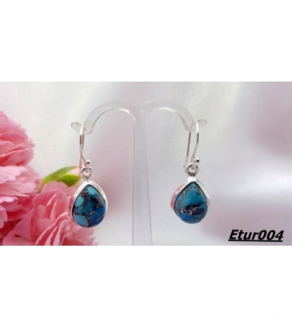 Turkuaz Taşlı, Gümüş Küpe (925 Ayar)