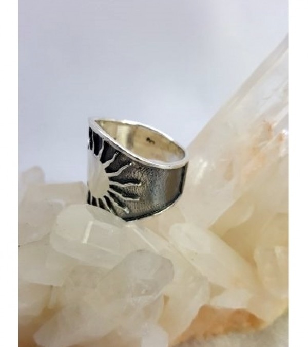 Güneş Desenli, Oksitli, Gümüş Yüzük (925 Ayar)