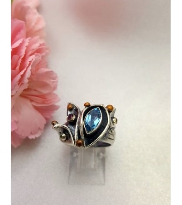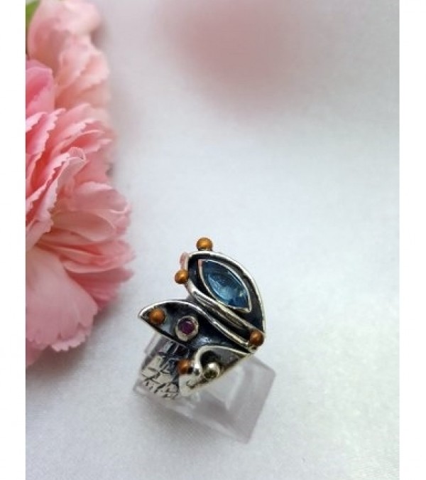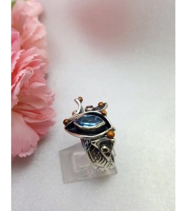 Mavi Zirkon Taşlı, Bronz ile Kombine, Otantik, Gümüş Yüzük (925 Ayar)